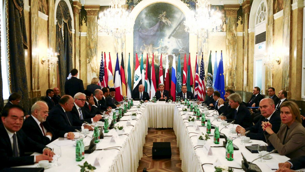 Moscú y Washington han dirigido en Viena una cumbre en la que han participado también Alemania, Arabia Saudí, China, Egipto, Emiratos Árabes, Francia, Líbano, Irán, Irak, Italia, Jordania, Reino Unido, Turquía y Omán, así como el enviado de la ONU para Siria, Staffen de Mistura y la citada Mogherini.