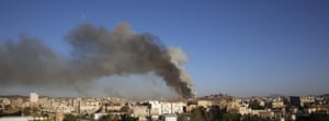 Facebook Gorjeo Pinterest El humo se eleva después de un ataque aéreo de Arabia en un depósito de armas en Sana. Fotografía: Hani Mohammed / AP